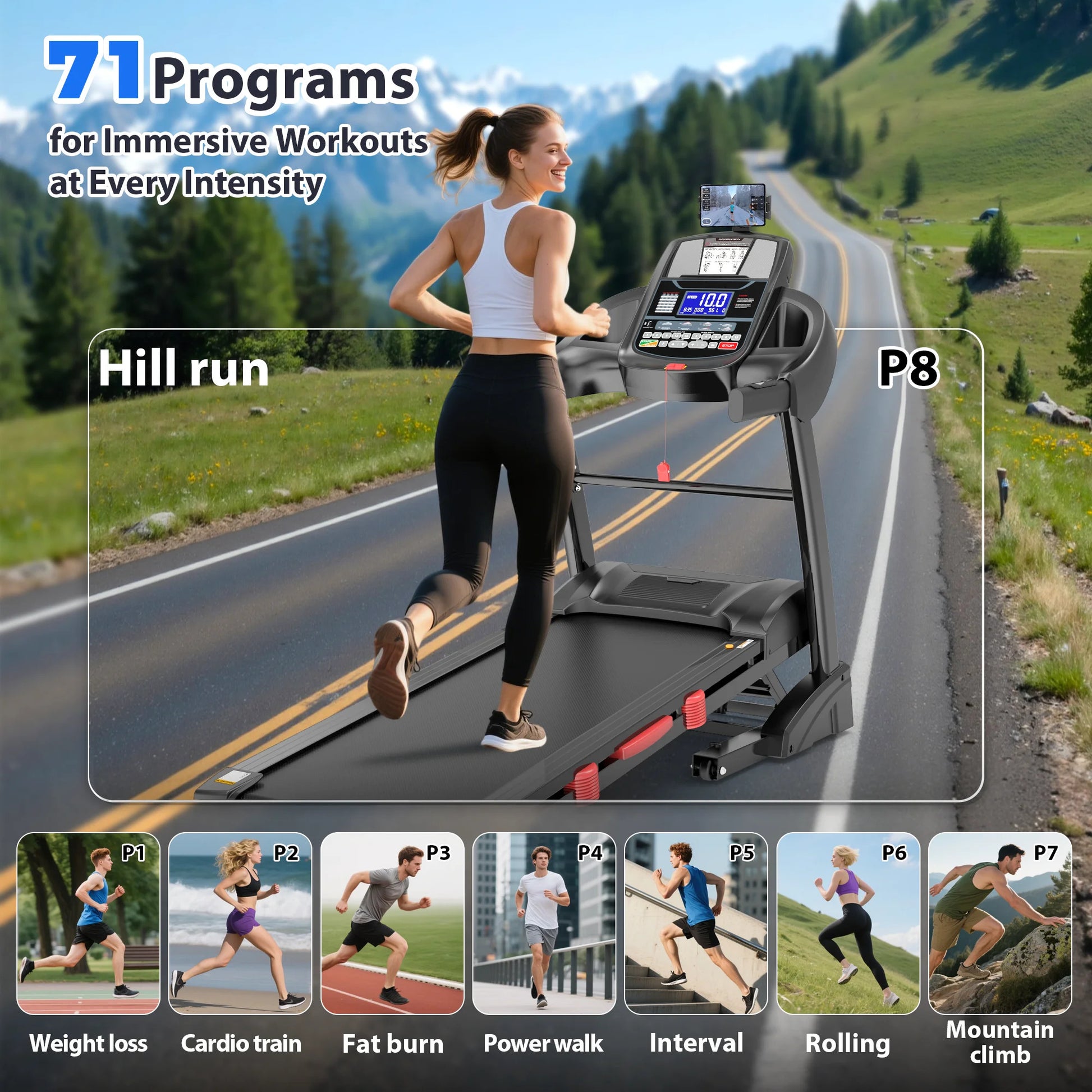 5HP Foldable Treadmill for Home w/ 15% Auto Incline, 400lbs Capacity, 10MPH & 64+7 Programs