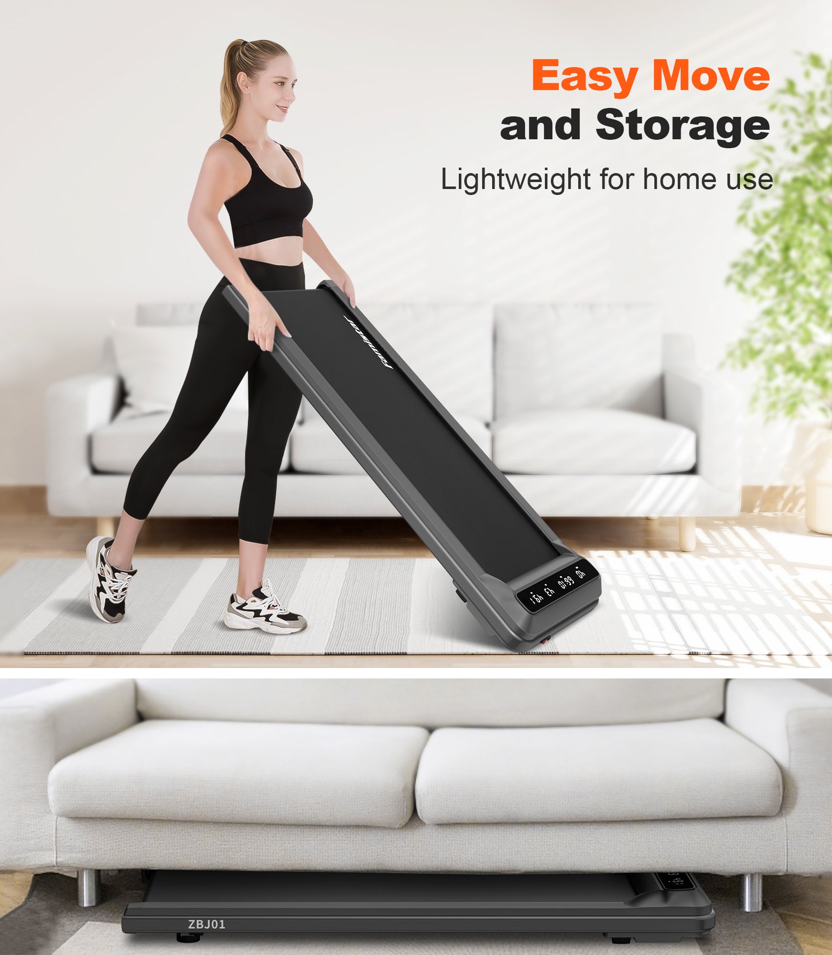 Walking Pad 2 in 1 Under Desk Treadmill, Portable Walking Jogging Machine for Home Office, 2.5HP Quiet Brushless Motor, LCD Display, Remote Control, 265lbs Capacity